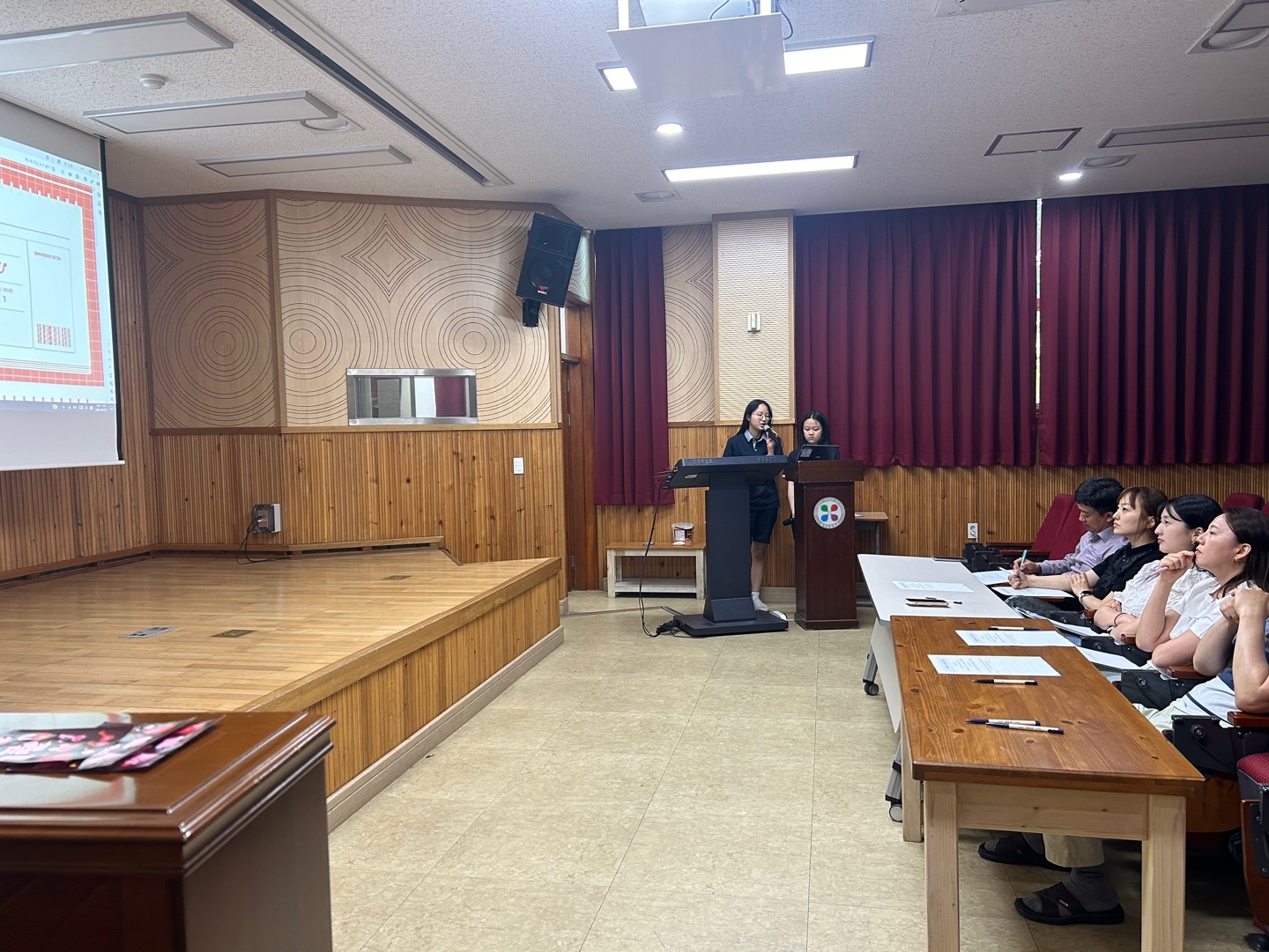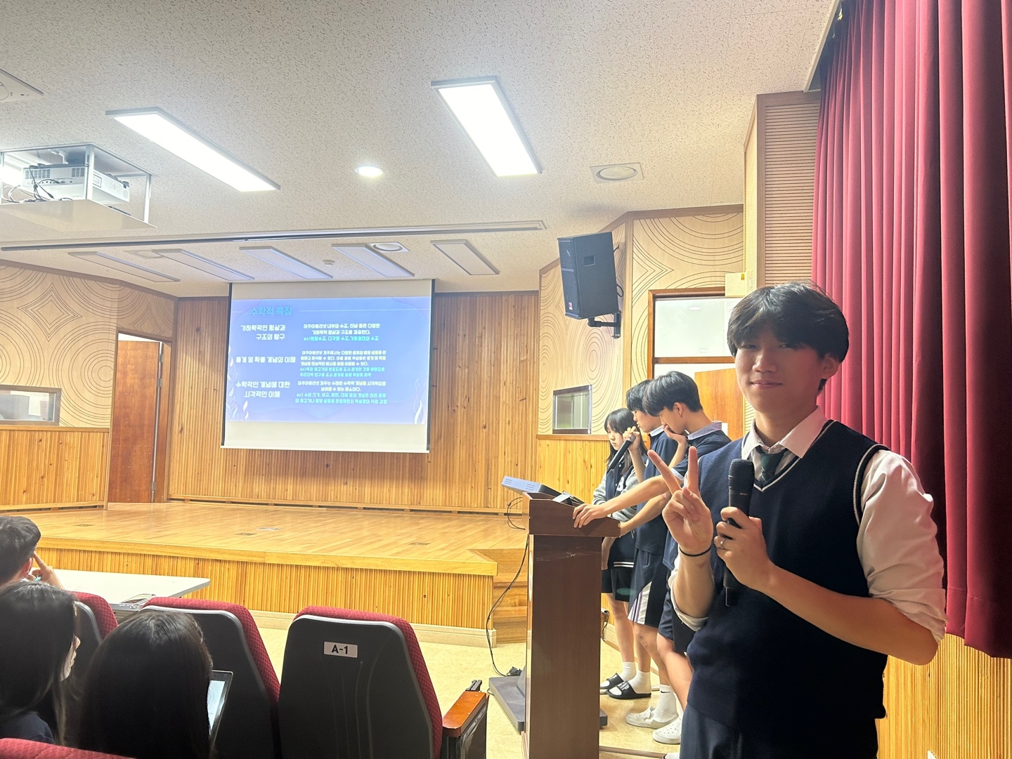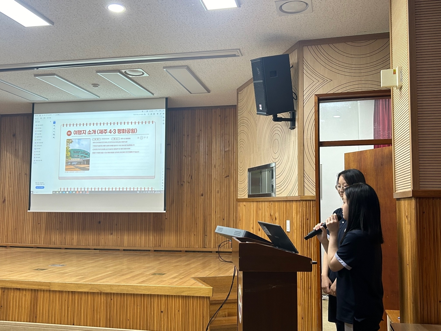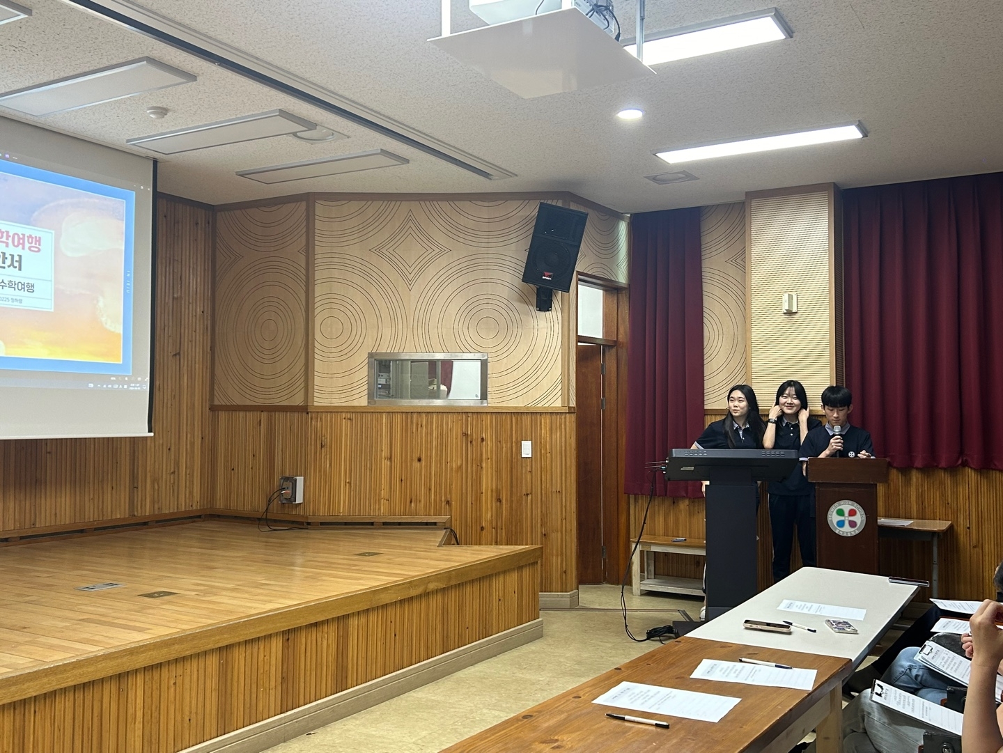 * 수학여행 코스 제안서 1차 서류 통과한 다섯 팀의 학생들이 피티 발표를 했습니다.