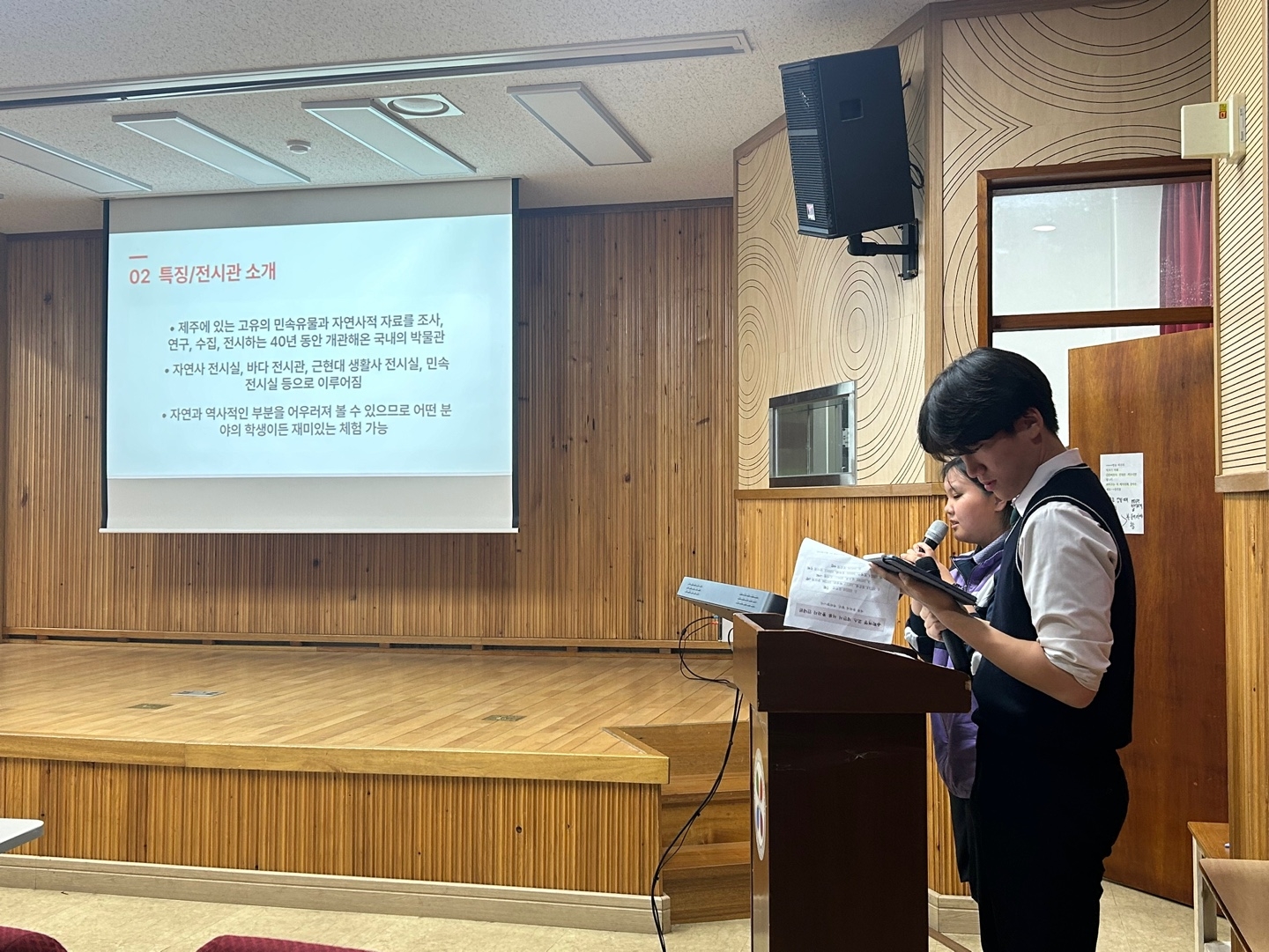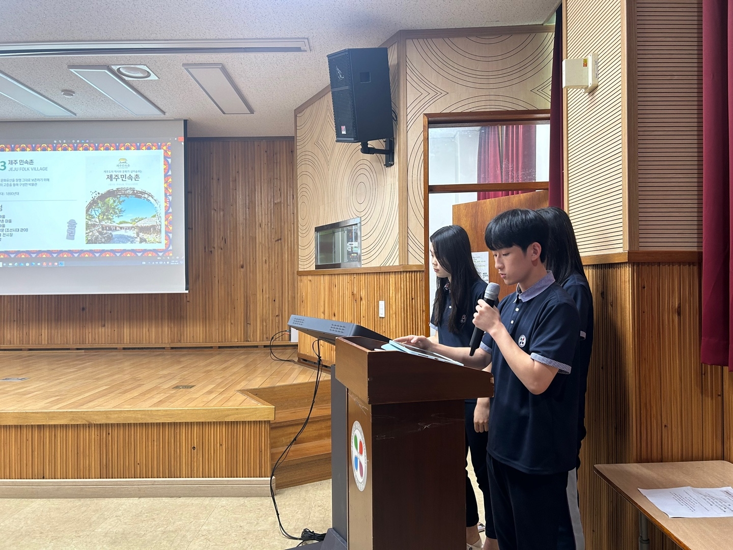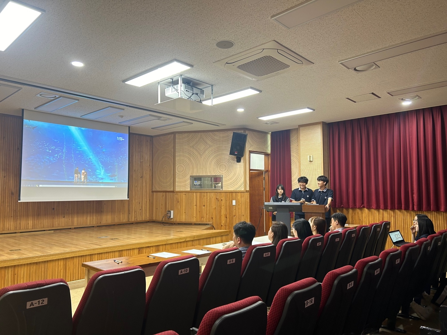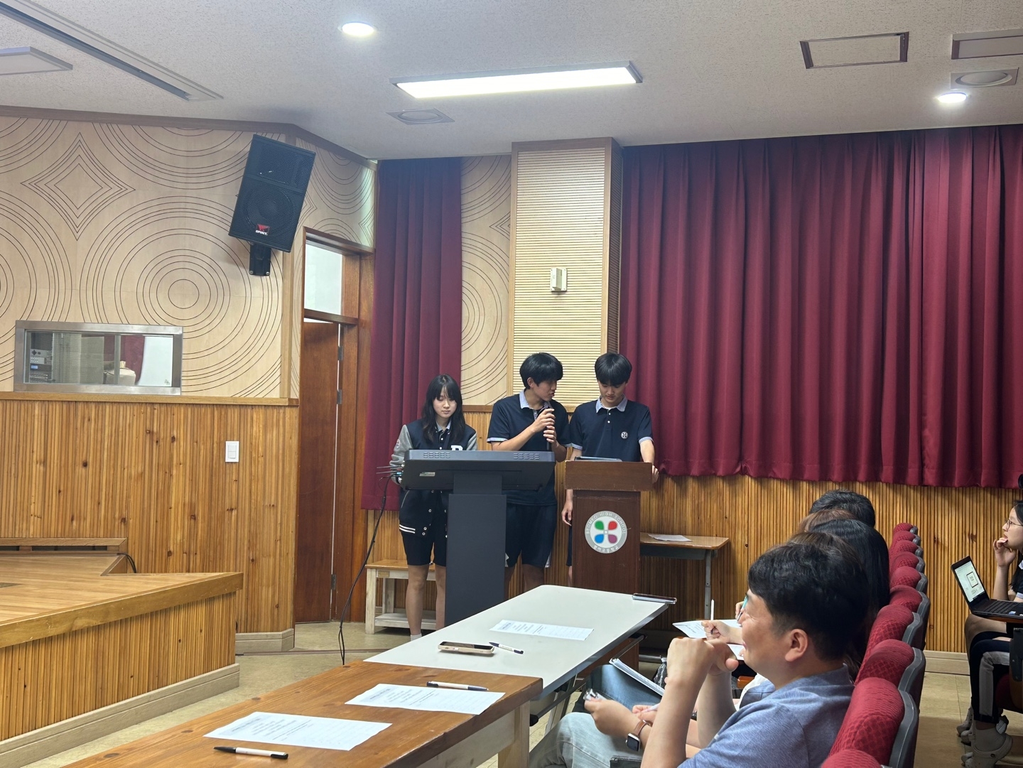 * 수학여행 코스 제안서 1차 서류 통과한 다섯 팀의 학생들이 피티 발표를 했습니다.